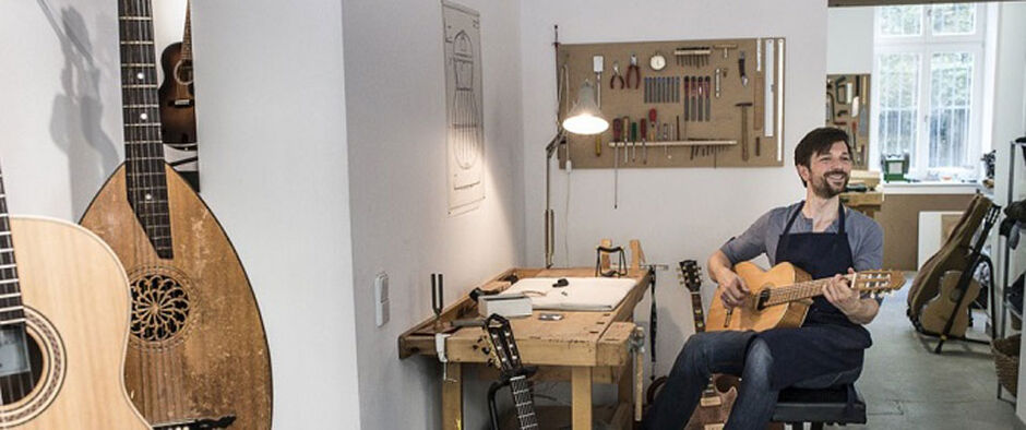 Sich selbständig zu machen war für Martin Meckbach nicht nur ein lang gehegter Traum, sondern auch so etwas wie ein Ausweg, um wieder mehr mit seinen Händen arbeiten zu können. Und zwar in dem Beruf, den er gelernt hat: Gitarrenbauer beziehungsweise Zupfinstrumentenmacher. Er war zufrieden in seiner damaligen Aufgabe im Vertrieb eines namhaften Instrumentenhändlers. Aber als seine eigentliche Berufung empfand er doch die Arbeit mit seinen Händen.